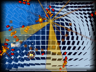 Everyday Shooter is an album of games exploring the expressive power of abstract shooters. Dissolute sounds of destruction are replaced with guitar riffs harmonizing over an all-guitar soundtrack, while modulating shapes celebrate the flowing beauty of geometry.